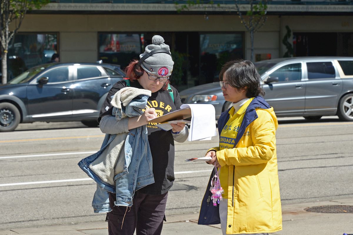 四‧二五彰顯和平理性 溫哥華民眾想學煉法輪功