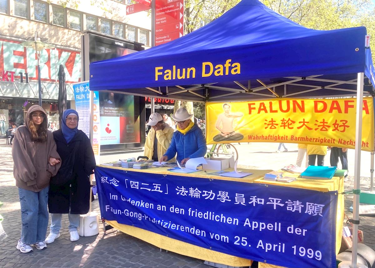 二零二六年四月二十五日,北威州部份法輪功學員在多特蒙德(Dortmund)市中心舉辦活動,回顧二十七年前,面對中共暗中升級對法輪功的迫害,逾萬名法輪功學員到北京國務院信訪辦上訪的勇氣與和平理性,並呼籲德國社會的關注,共同制止中共的迫害。