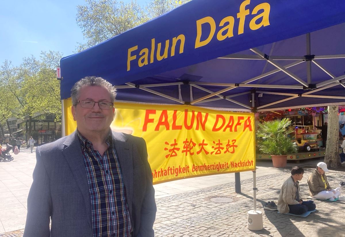 【明慧網二零二六年四月二十七日】(明慧德國記者站報導)看到當年四﹒二五法輪功學員萬人上訪的歷史照片,埃茲德米爾(Özdemir)先生稱讚道:「這是勇敢的行為。民眾需要以某種方式表達其訴求。言論和集會自由是維護體制發展的良方。」