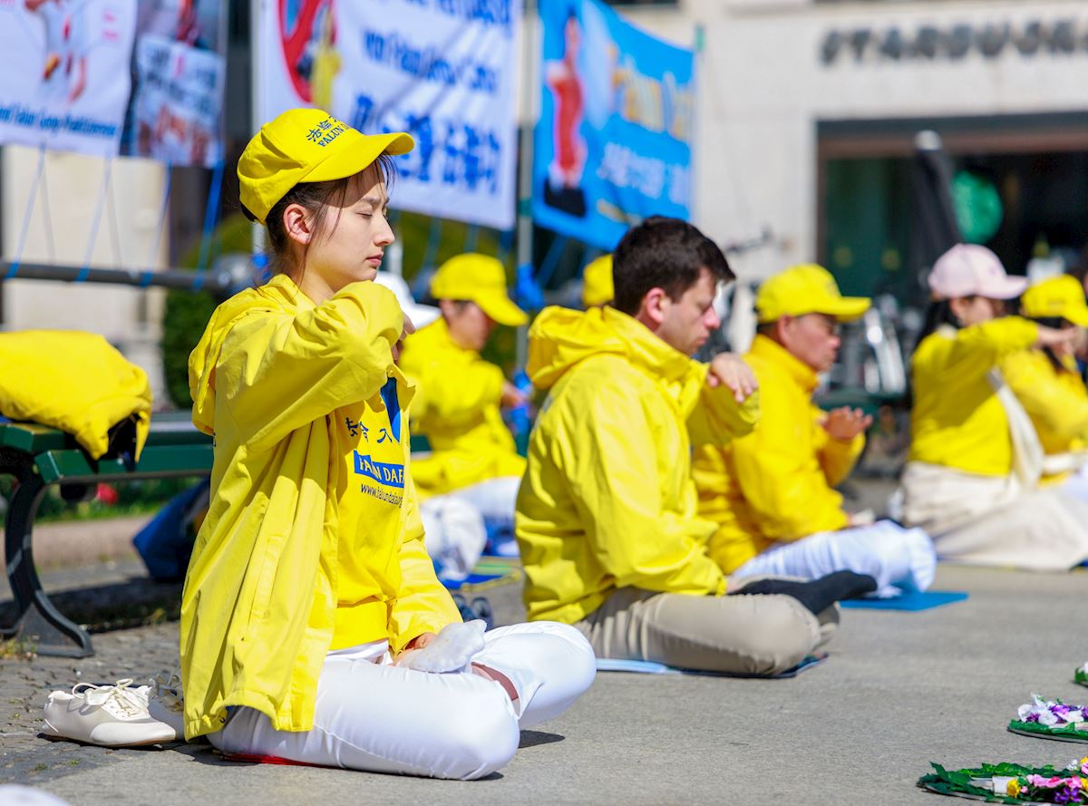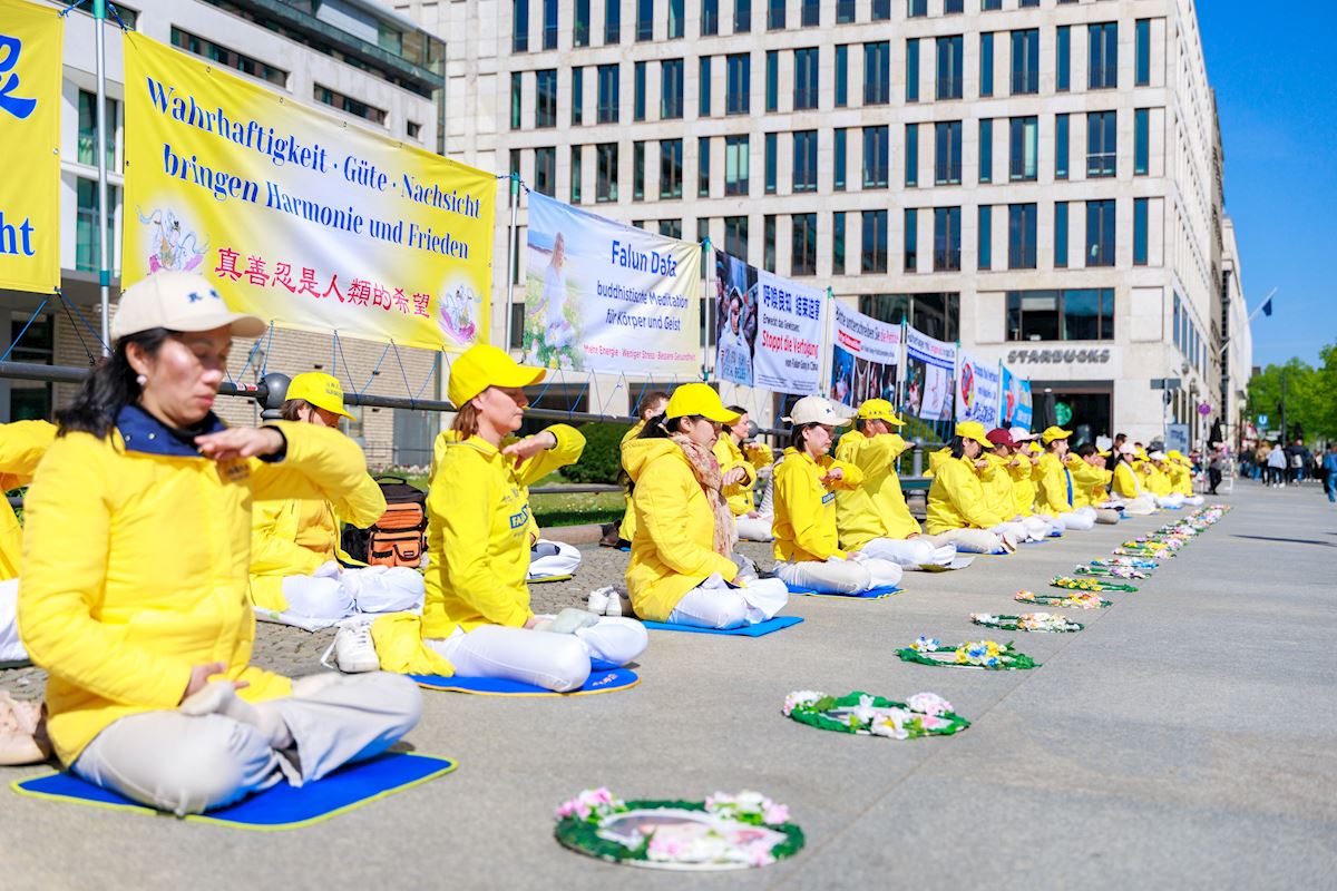 法輪功柏林紀念四﹒二五和平上訪 路人競相聲援