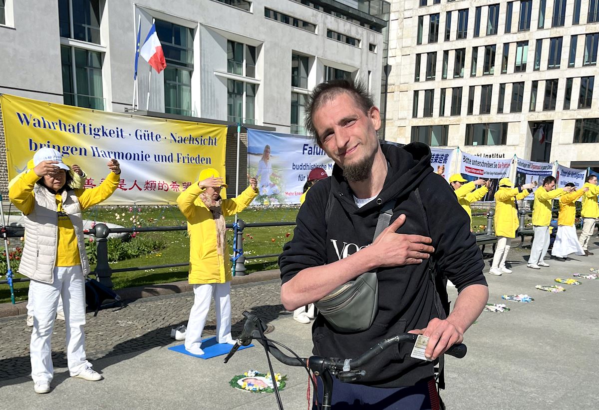 '圖14:柏林人帕特裏克﹒凱勒爾聲援法輪功學員反迫害。'