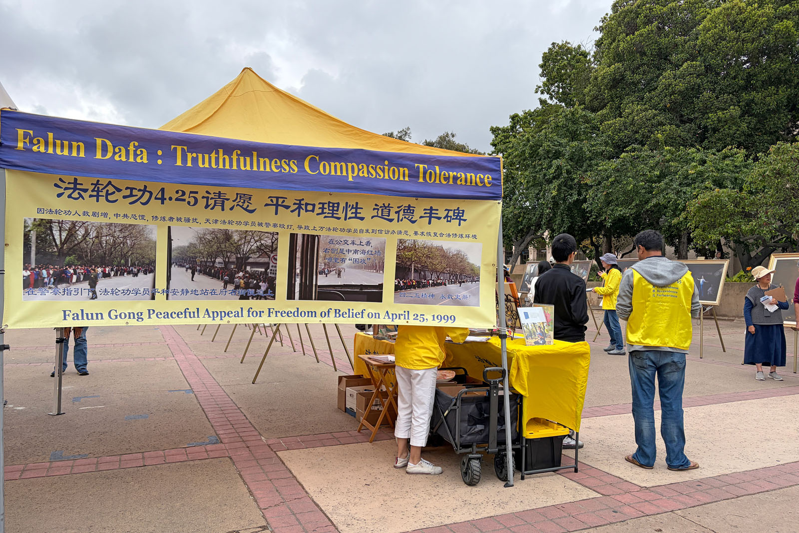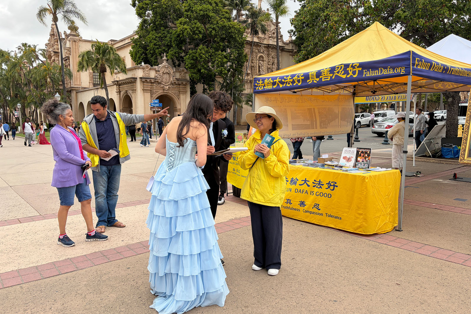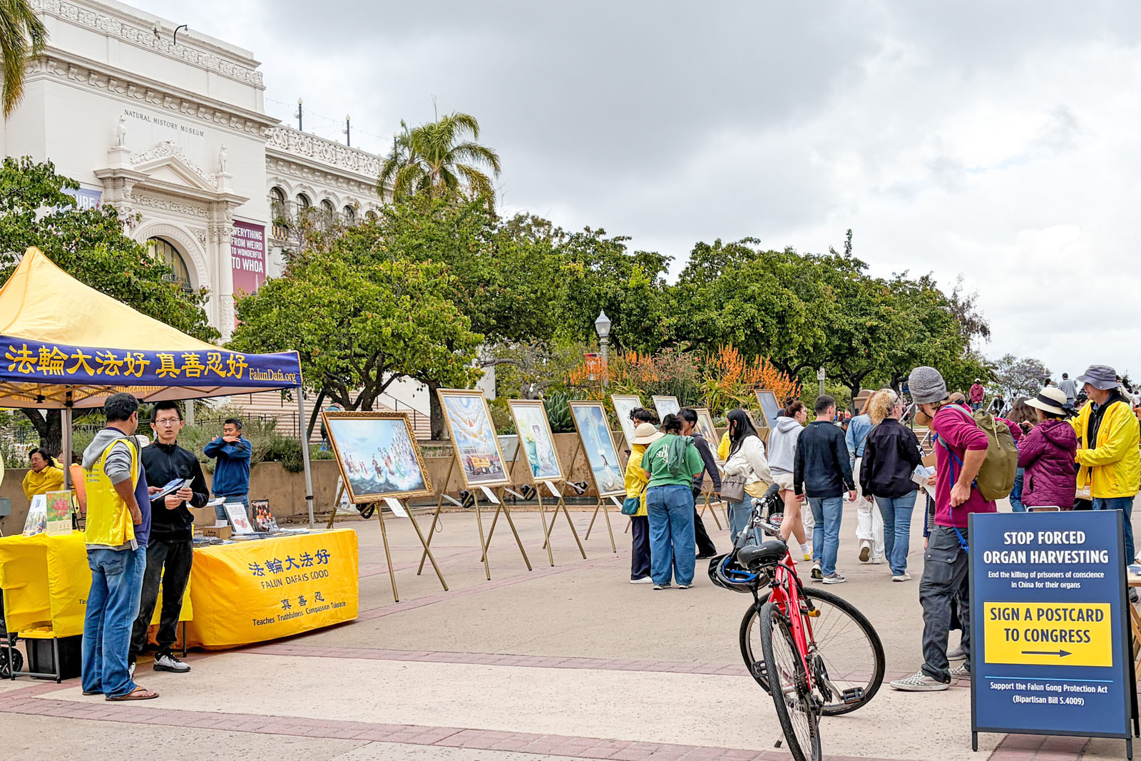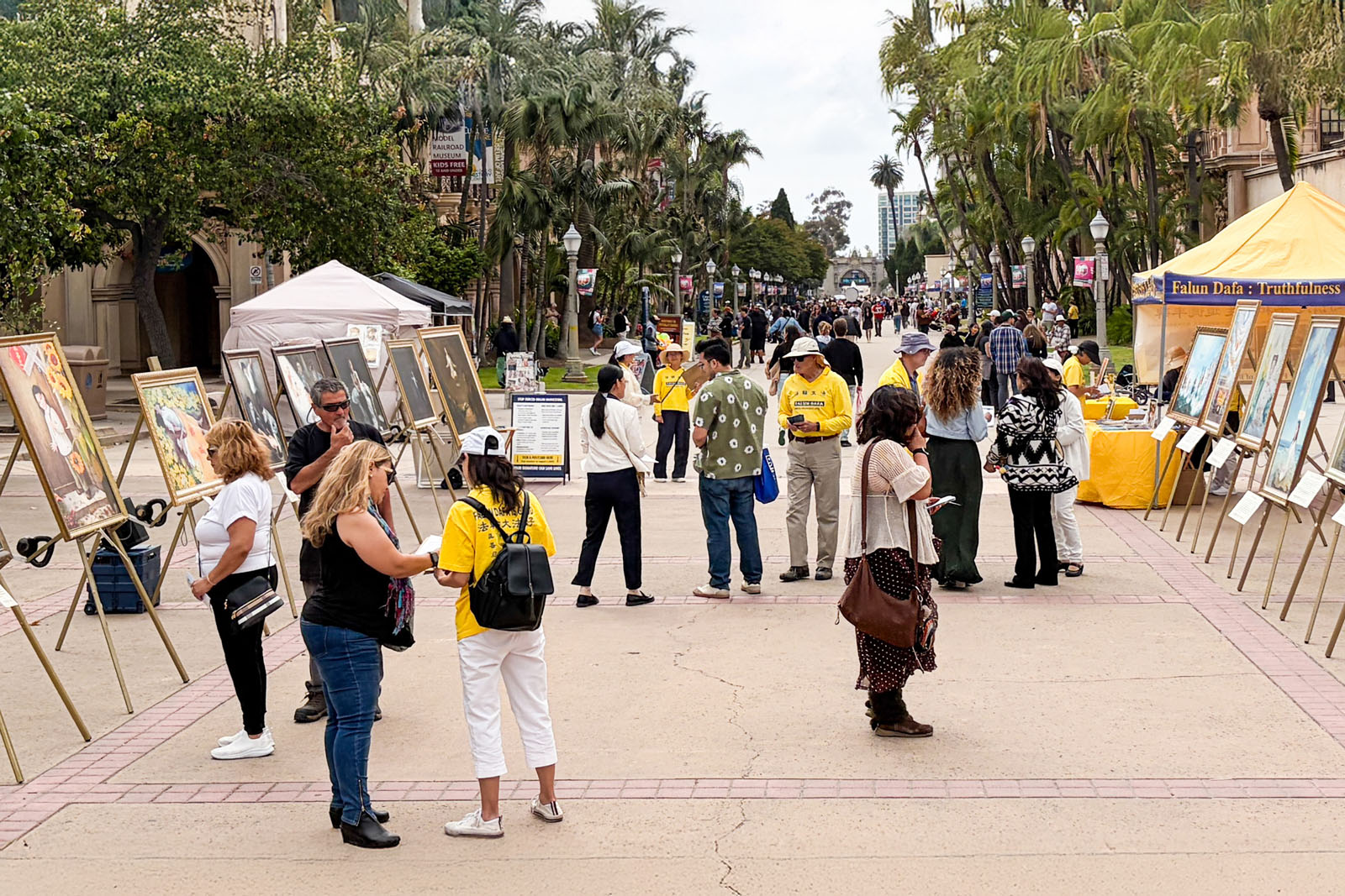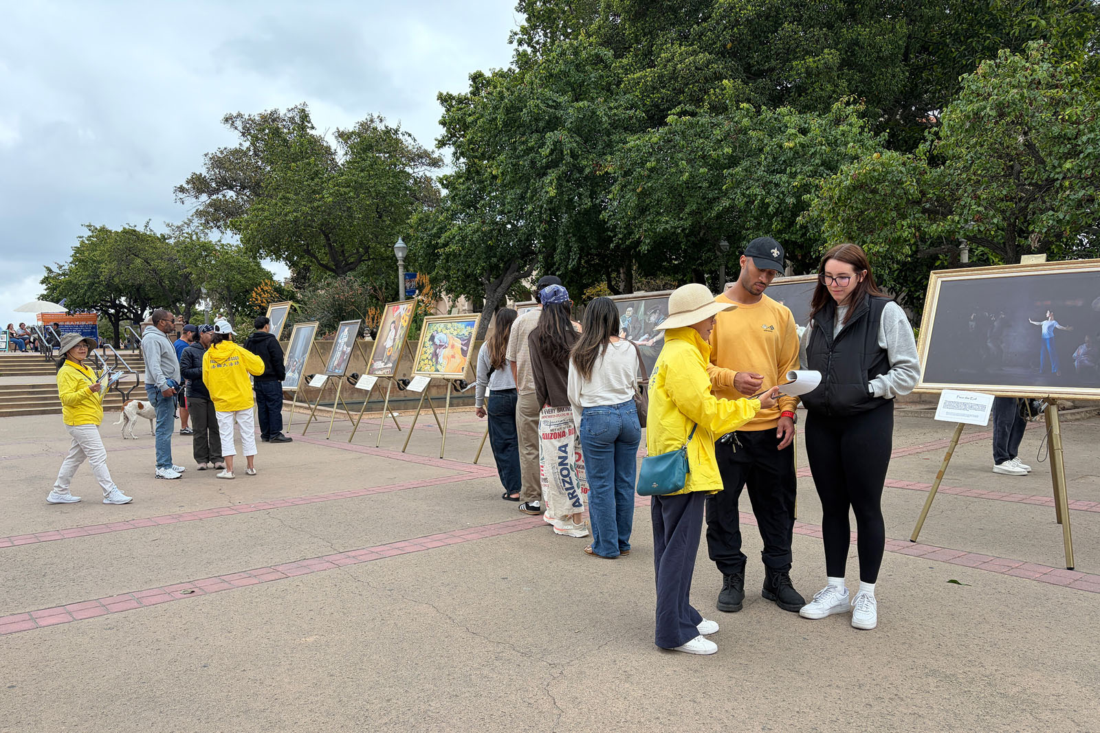 【明慧網二零二六年四月二十七日】(明慧聖地亞哥記者站報導)在陽光明媚的春日週末,美國聖地亞哥著名景點巴爾博亞公園(Balboa Park)人潮湧動,一場以藝術呈現信仰與勇氣的展覽悄然展開。二零二六年四月二十五日,法輪大法學員在此舉辦「真善忍國際美展」暨紀念「四‧二五」和平上訪二十七週年。