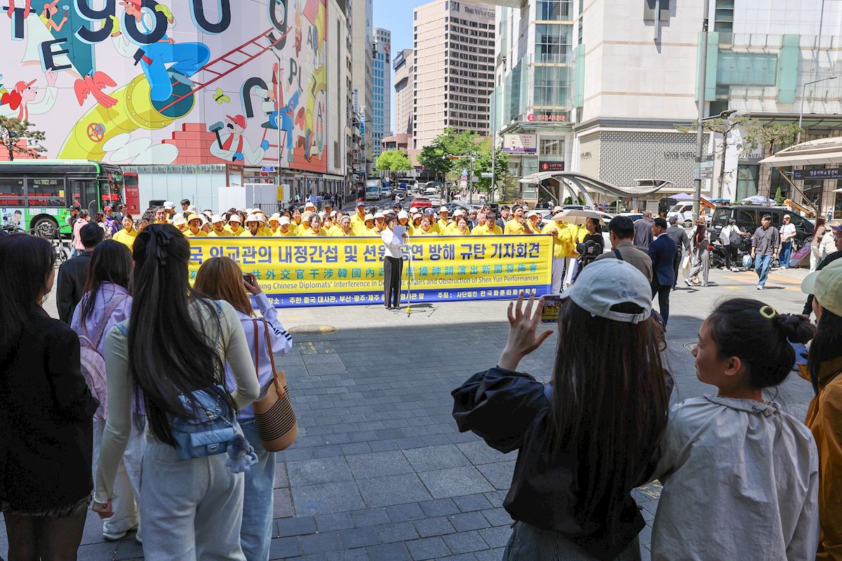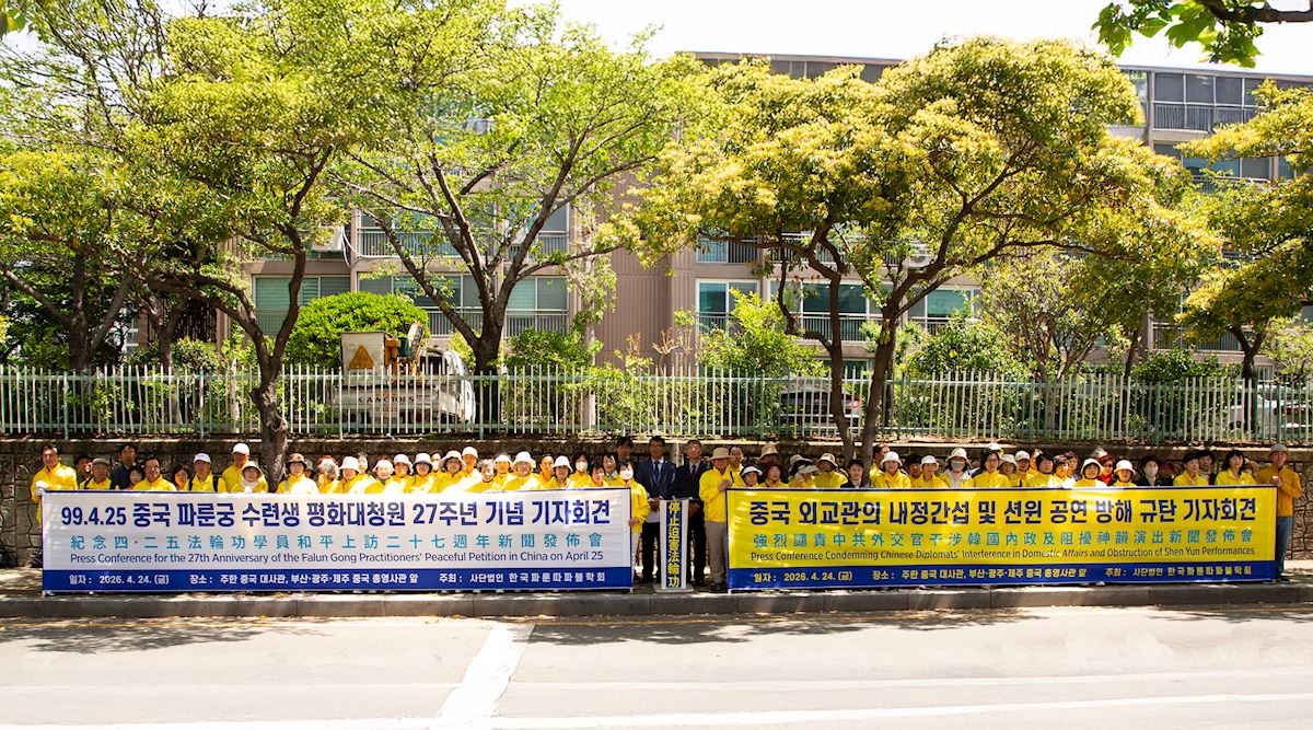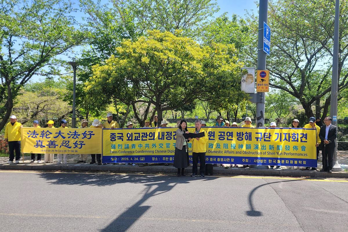 本次記者會除首爾外,還在釜山、光州、濟州中國總領事館前等地同步舉行,各地現場均部署警力維持秩序。尤其在釜山,曾親歷今年神韻演出爆炸物威脅事件的警方人員對相關發言表現出高度關注。