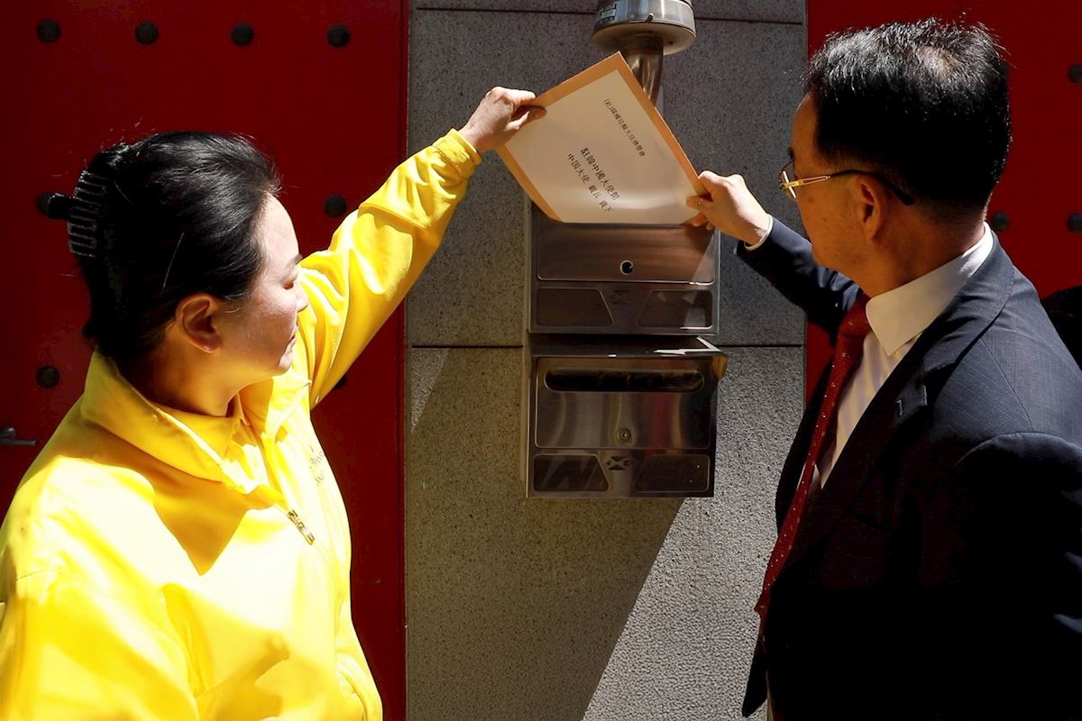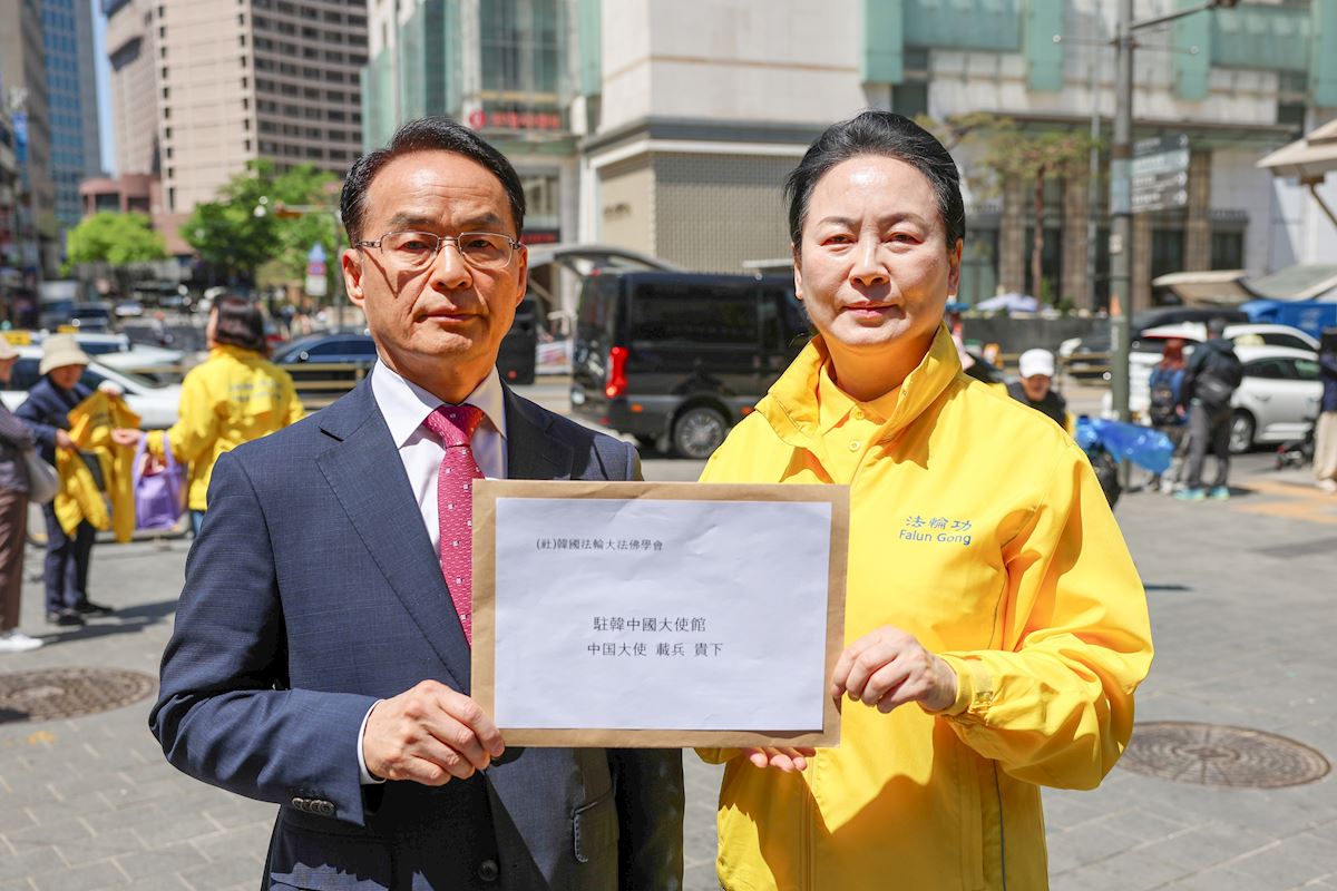 ![]() 圖8~9:韓國法輪大法佛學會向中國駐韓大使館遞交的聲明書 |