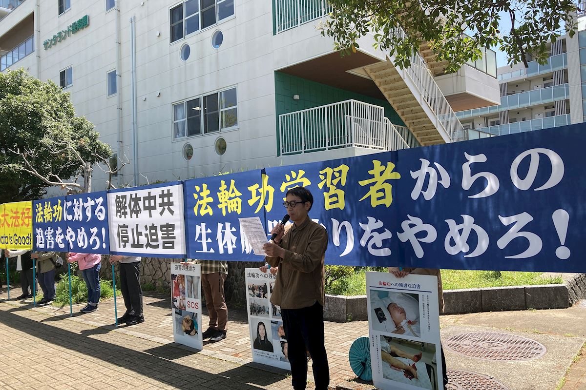 學員們以中文、日文宣讀聲明,向公眾介紹法輪功二十七年來所遭受的人權迫害情況,呼籲國際社會持續關注並制止中共對法輪功的打壓與暴行。