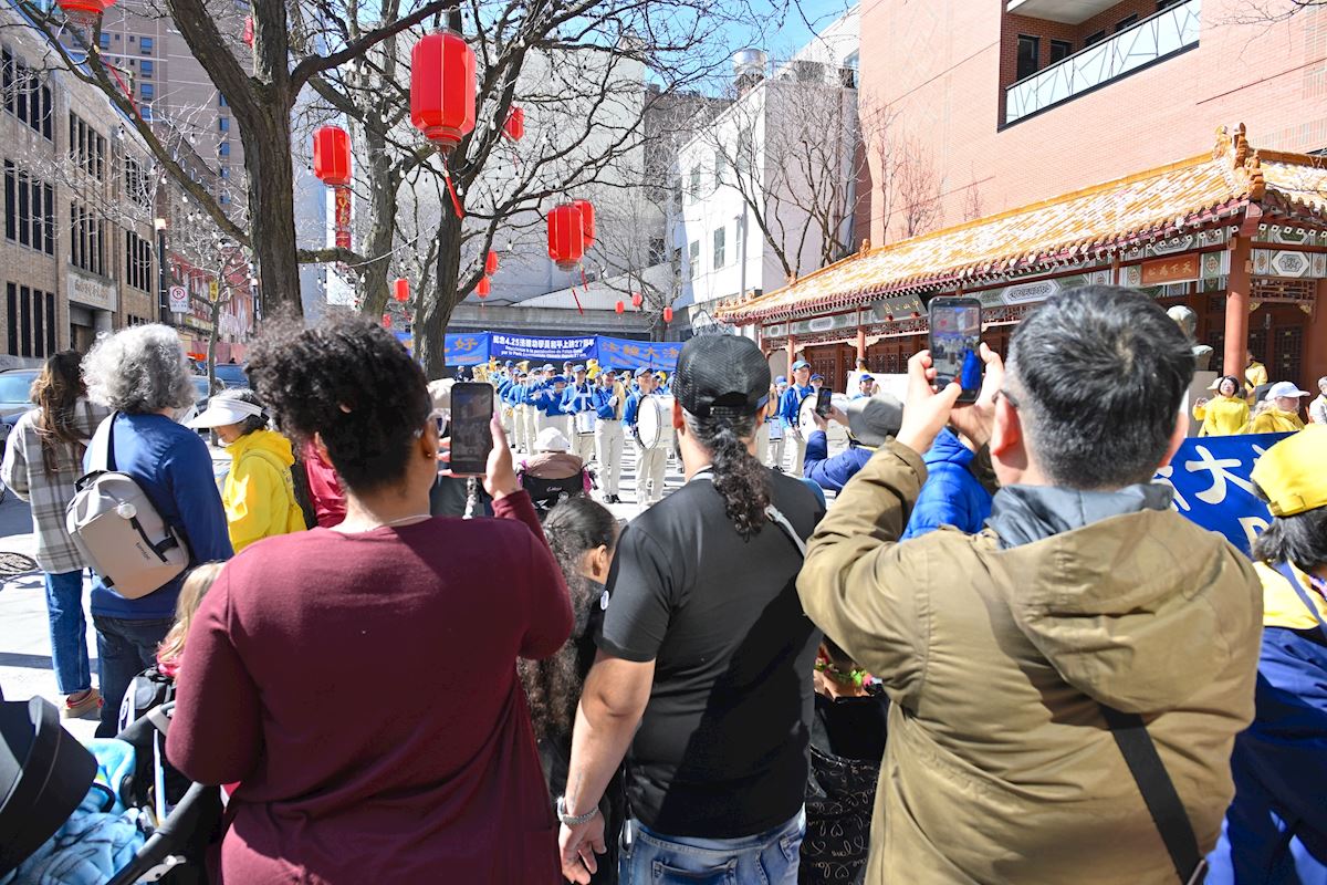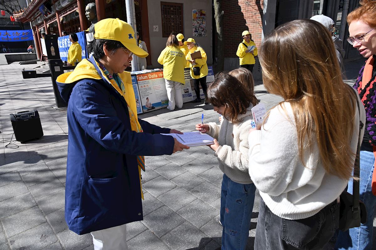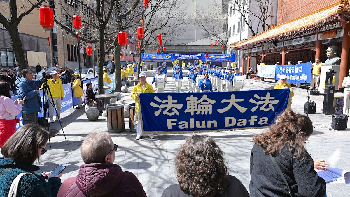 圖1~2:二零二六年四月二十五日,魁北克部份法輪功學員在蒙特利爾唐人街舉行集會,紀念四﹒二五和平上訪二十七週年。
