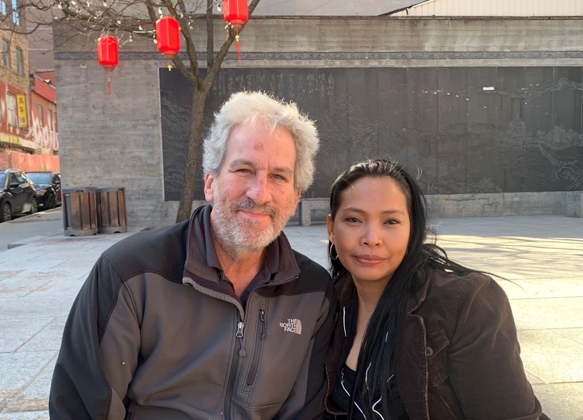 '圖1~2:二零二六年四月二十五日,魁北克部份法輪功學員在蒙特利爾唐人街舉行集會,紀念四﹒二五和平上訪二十七週年。'