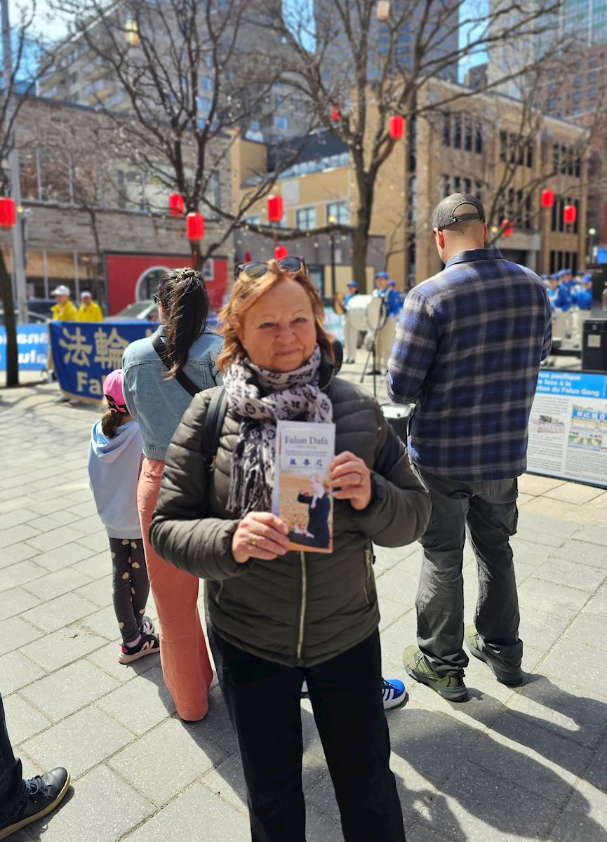 前聯邦政府工作人員丹妮絲(Denis)說,她曾去過中國,目睹過中共對自己人民的殘酷。她表示自己支持法輪功,她說她無法理解如此和平的修煉團體,會在中國遭到如此殘酷的迫害。她仔細閱讀了法輪功的傳單,並表示之後會進一步了解相關資訊。