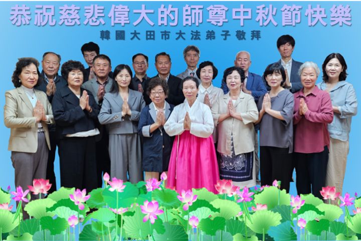 【明慧網二零二五年十月六日】韓國首爾、濟州島、仁川、永宗島、安山、慶南、忠世宗市、金海市、始興市、高陽市、忠清北道、全羅北道、水原、金海市、天安市、富川、大田市、大邱市、光州全羅南道、慶尚北道、江原嶺東、昌原、咸安、蔚山等地大法弟子恭祝師尊中秋節快樂! 韓國富川