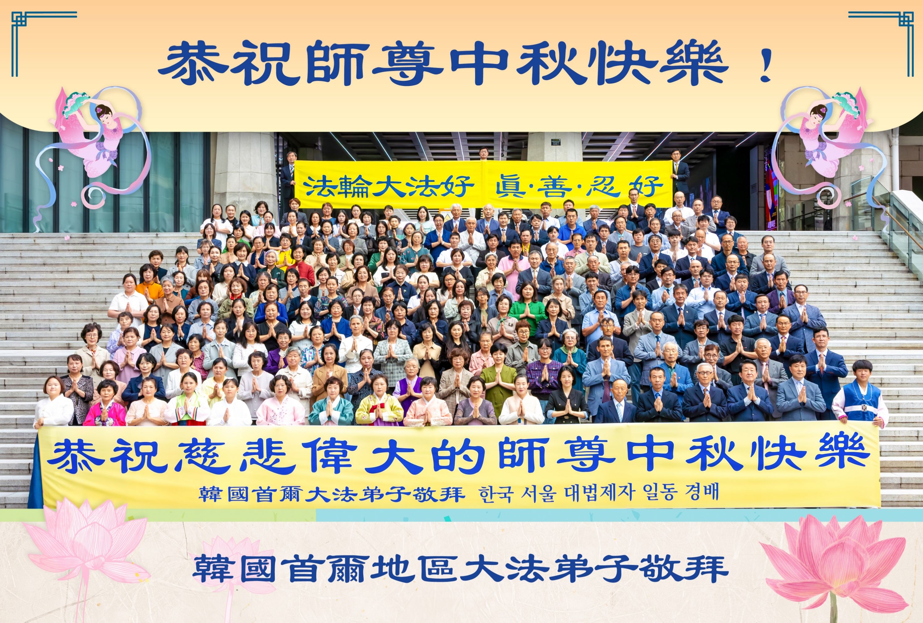 韓國首爾市大法弟子恭祝慈悲偉大的師尊中秋快樂!