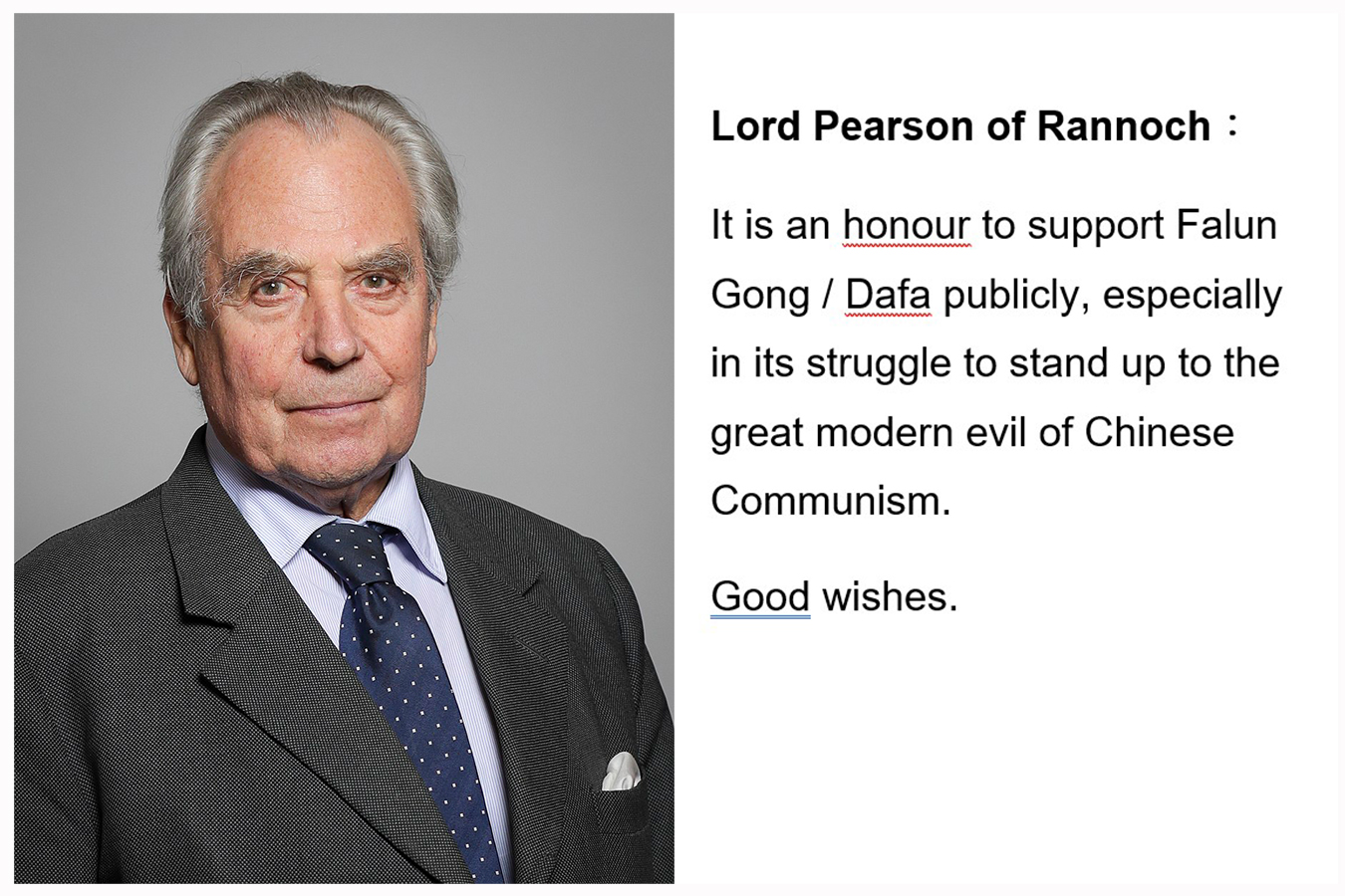我想表達我對中國法輪功學員遭受的系統性迫害及嚴重人權侵犯的深切擔憂,這種狀況已持續了二十多年。令人痛心的是,法輪功學員正面臨著日益嚴密的大規模監控、酷刑折磨和任意拘留。 更令人駭人聽聞的是,已有可信的報告揭露了活摘器官的罪行。在未經本人同意的情況下,被拘留者的心臟、腎臟和肝臟等重要器官被強行摘取──而這一切都是在中國當局官方知情、甚至法律掩護下進行的。 法輪功學員在被拘留期間被強迫接受抽血檢測和各類「體檢」,拘留中心實際上已被變成「活體器官庫」。這種做法對中共當局有雙重目的:既進一步鎮壓了法輪功學員,又建立了一個器官供應源,從而實現了極短的器官移植等待時間。 聯合國和歐盟等國際機構,已廣泛地譴責這種針對少數民族和宗教群體被拘者的強摘器官行徑。然而,儘管遭到國際社會廣泛譴責,中共仍在繼續這一駭人聽聞的暴行。除非我們聯合起來反對這種公然踐踏人權的行為,否則這種罪行將不會停止。 我懇請大家為那些無法為自己發聲的人發聲!我們絕不能讓中共犯下如此滔天罪行,卻逍遙法外。我們也必須捍衛符合倫理道德的器官移植準則,通過呼籲對中國發生的、針對法輪功學員的罪行開展國際性、獨立的調查,來幫助制止對在押良心犯活體強摘器官的暴行。此外,我們還必須確保在英國境內發生的各類跨國鎮壓行為,得到充份的重視、調查和追究。 我為仍在遭受苦難的法輪功兄弟姐妹們祈禱──我們必須齊聲疾呼,徹底終結這場迫害! 謝謝大家,願上帝保祐。 蘭諾赫的皮爾遜勛爵 (Lord Pearson of Rannoch):  圖2:蘭諾赫的皮爾遜勛爵和其函文。 |
