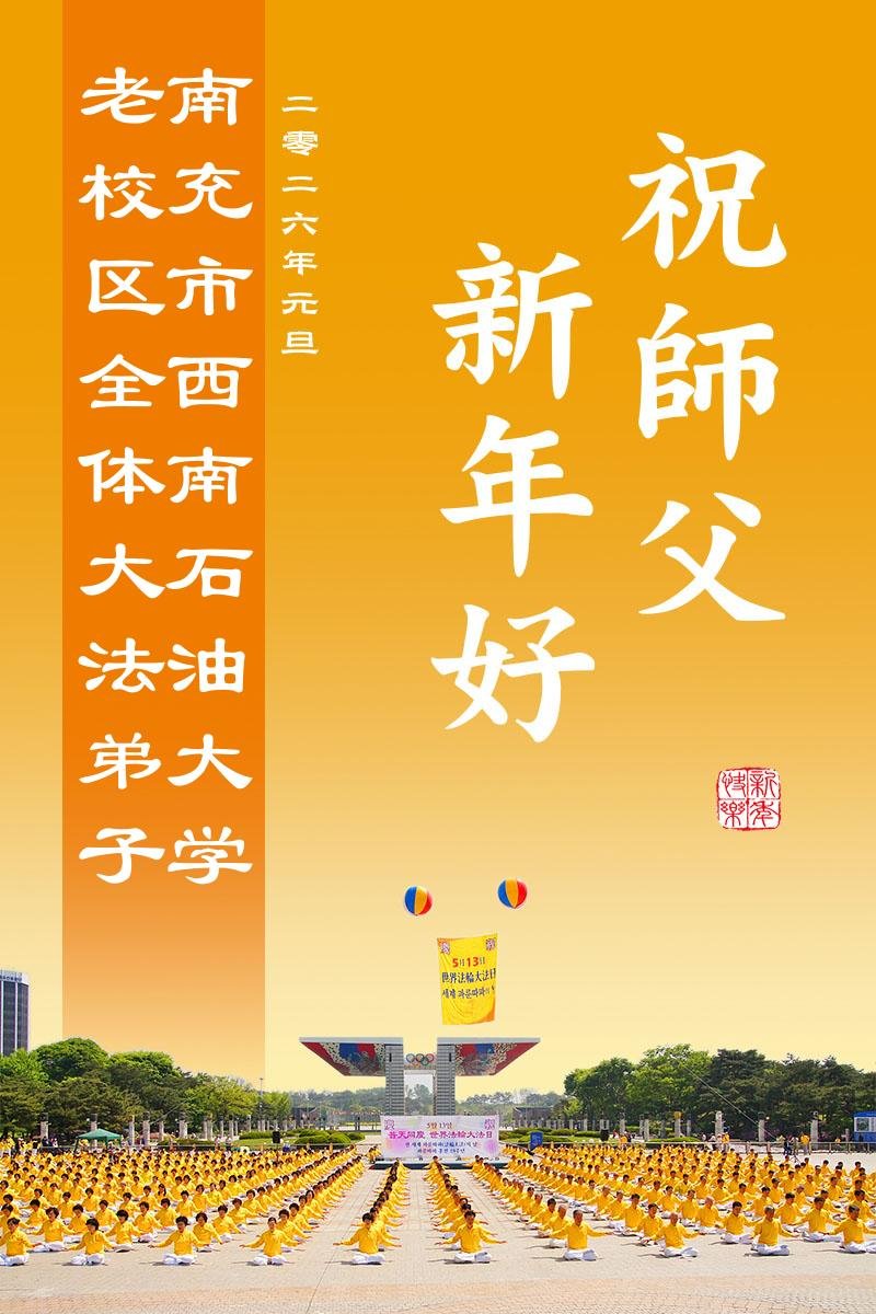 四川省南充市西南石油大學老校區全體大法弟子恭祝師尊新年快樂!
