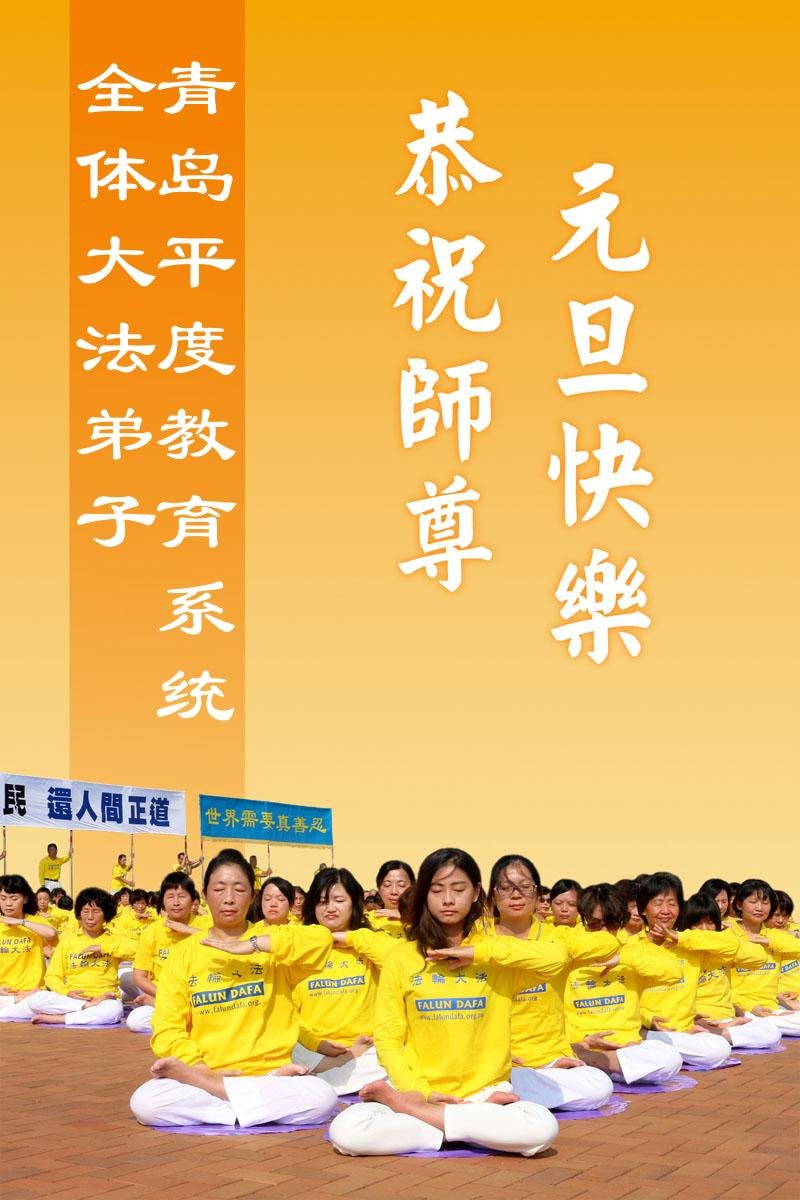 感恩師尊慈悲苦度! 山東省青島平度市教育系統全體大法弟子恭祝慈悲偉大的師尊元旦快樂!