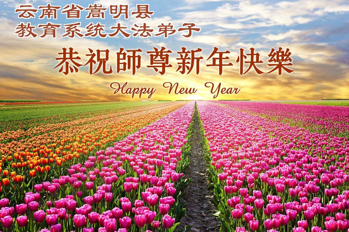 雲南省昆明市嵩明縣教育系統大法弟子恭祝師尊元旦快樂!