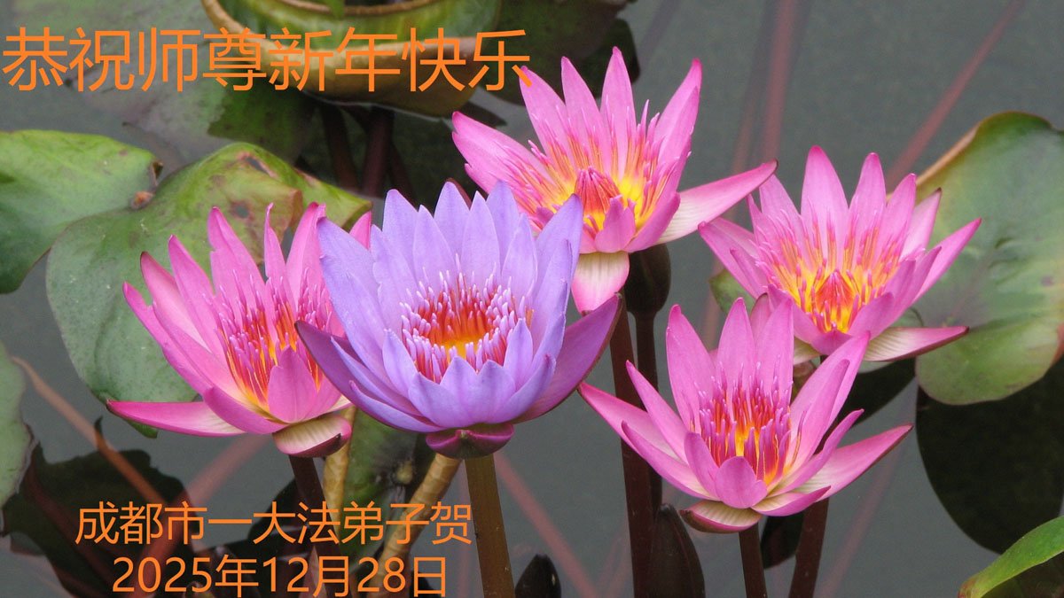 成都市一大法弟子 二零二五年十二月二十九日 四川省成都郫都區大法弟子三姐妹恭祝慈悲偉大的師父新年快樂!