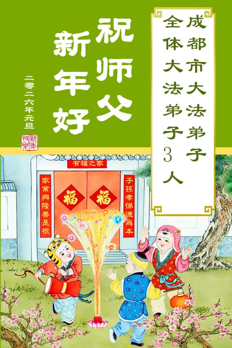 成都市大法弟子3人 二零二五年十二月二十九日 四川省成都大法弟子全家恭祝師尊元旦快樂!