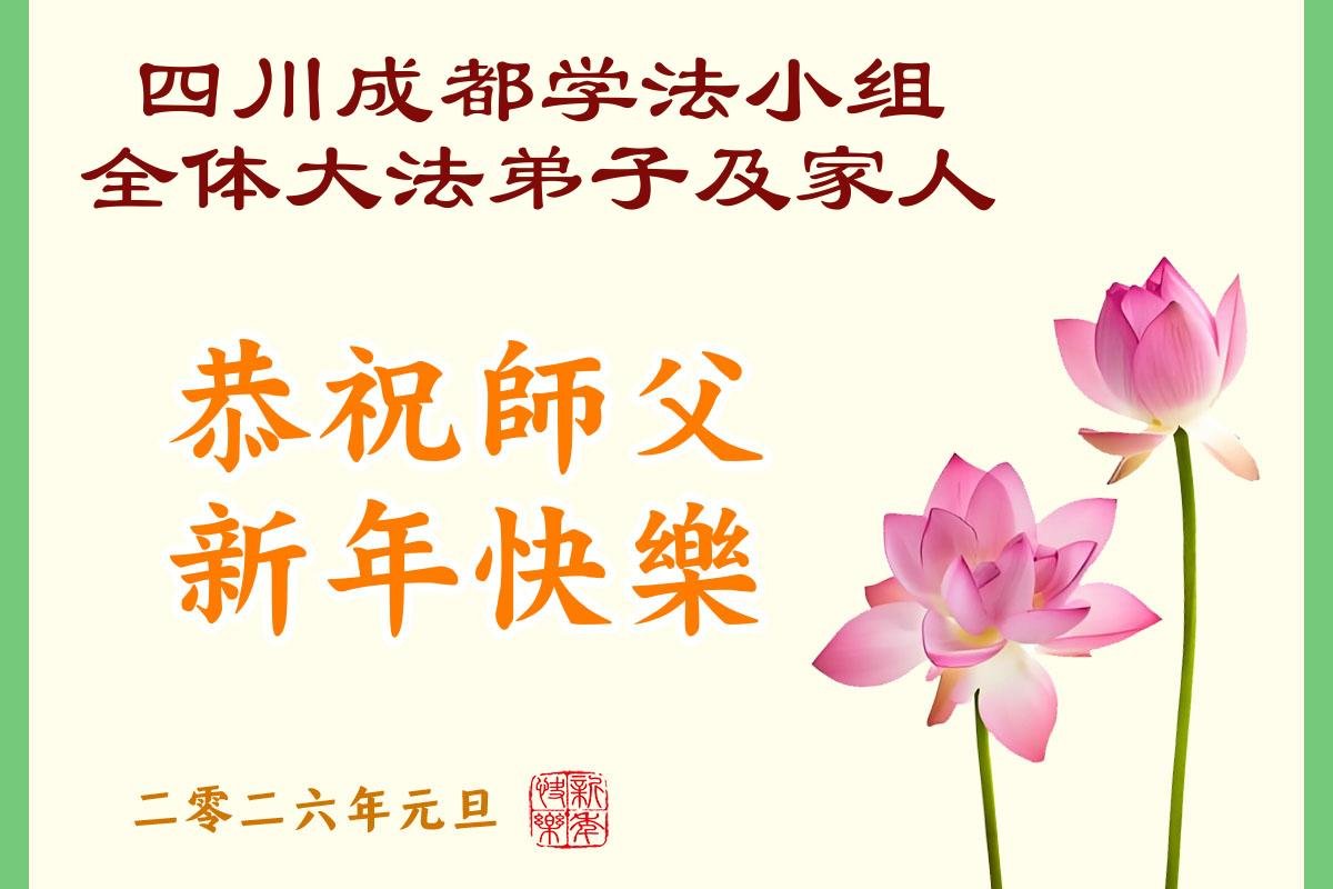 四川成都一學法小組全體大法弟子及家人恭祝師父新年快樂!