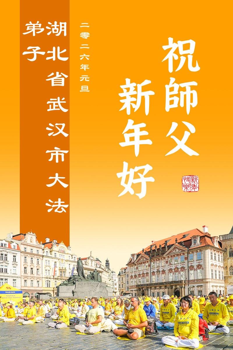 湖北武漢洪山區學法小組大法弟子 二零二五年十二月二十九日 湖北武漢一女大法弟子恭祝慈悲偉大的師尊元旦快樂!