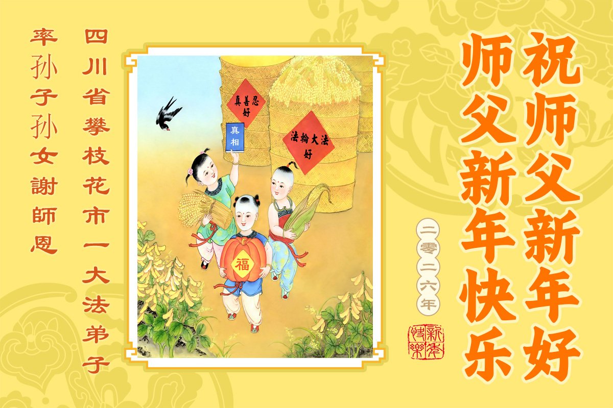 四川省一大法弟子 二零二五年十二月二十九日 四川綿陽市城郊片區一夫妻大法弟子及全家人恭祝偉大的師父新年快樂!