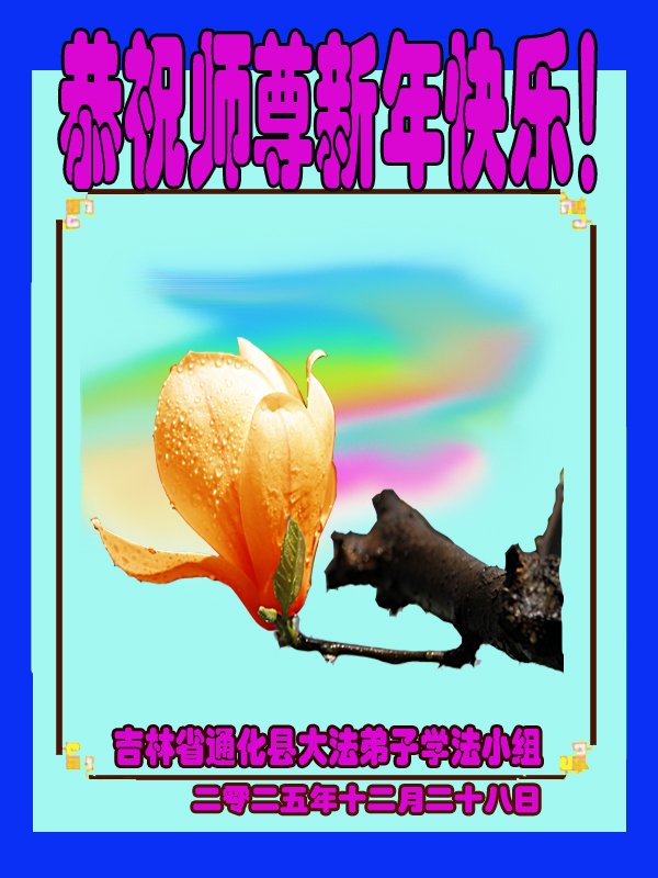 祝師尊新年快樂!師父辛苦了。弟子堅信師父,堅定修煉,跟師父回家。 吉林省延吉朝陽川一女大法弟子 二零二五年十二月三十日 吉林省通化市通化縣大法弟子學法小組大法弟子恭祝師尊新年快樂!