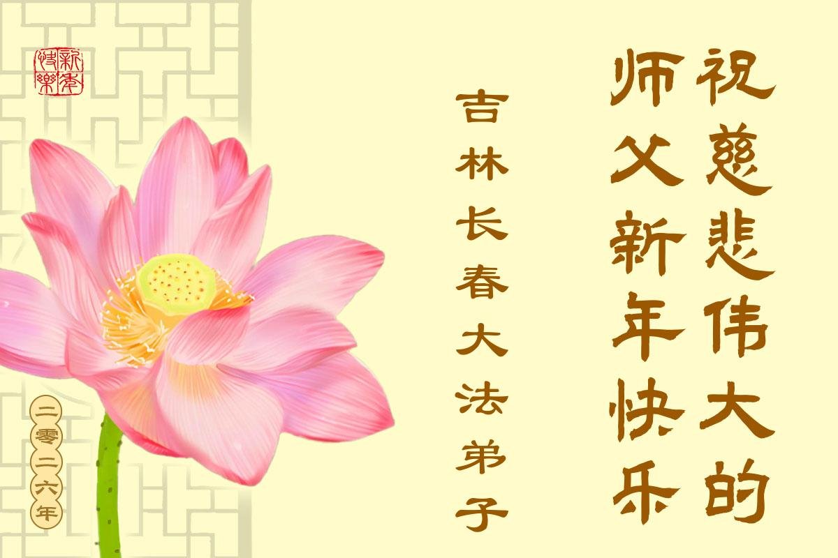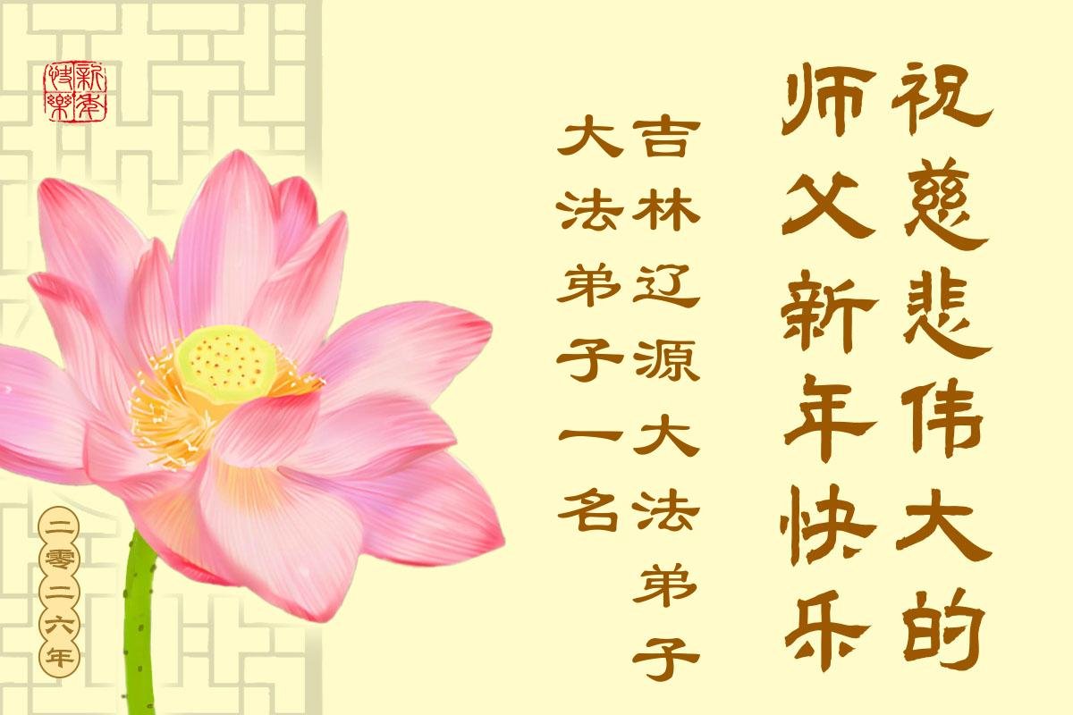 我們今生有幸成為師尊的弟子,感恩師尊的慈悲救度!感恩師尊時時刻刻的慈悲保護!弟子在新的一年裏一定精進實修,兌現誓約,救度眾生,完成使命,跟師尊回家。讓師尊多一份欣慰,少一份操勞。叩拜師尊! 吉林省伊通縣一學法小組敬上 吉林省吉林市舒蘭市一大法弟子恭祝師尊新年快樂!