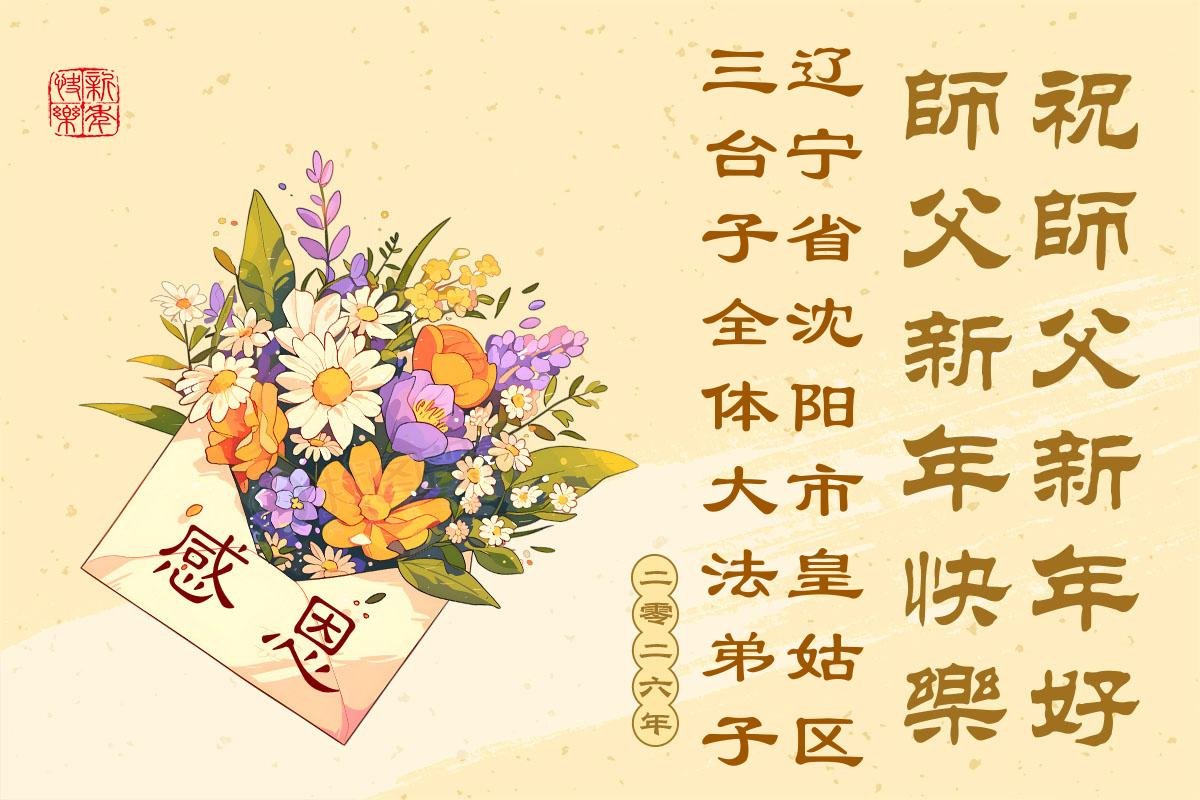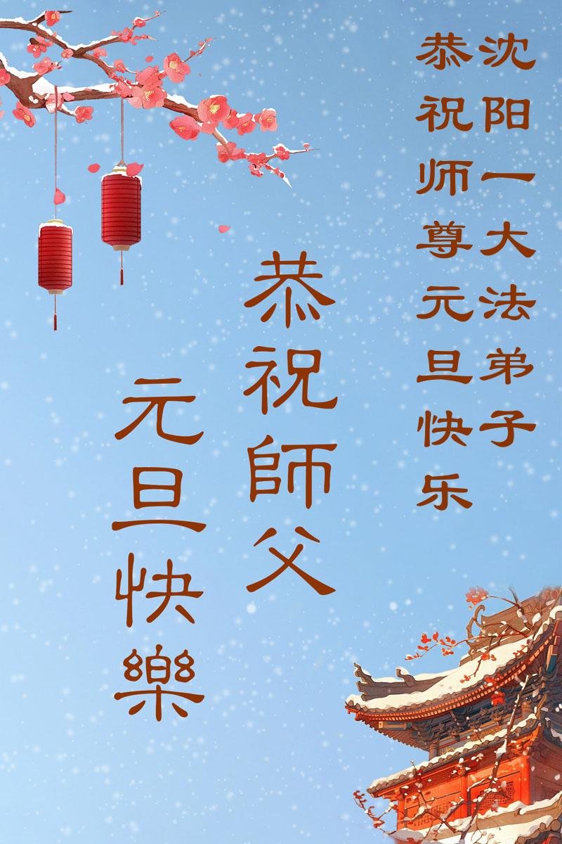 遼寧省瀋陽市皇姑區三台子全體大法弟子 二零二五年十二月三十日 遼寧省瀋陽一大法弟子恭祝師尊元旦快樂!