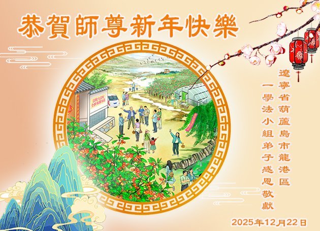 恭祝師尊新年快樂!師尊您辛苦了!弟子想念師尊!新的一年裏,弟子要多學法,學好法,踏踏實實的修,努力做好三件事。感恩師尊慈悲救度!師恩浩蕩!師恩難報,弟子唯有精進。叩拜師尊! 2025年12月30日 遼寧省葫蘆島市南票區黃甲一學法小組大法弟子恭祝慈悲偉大的師尊新年好!
