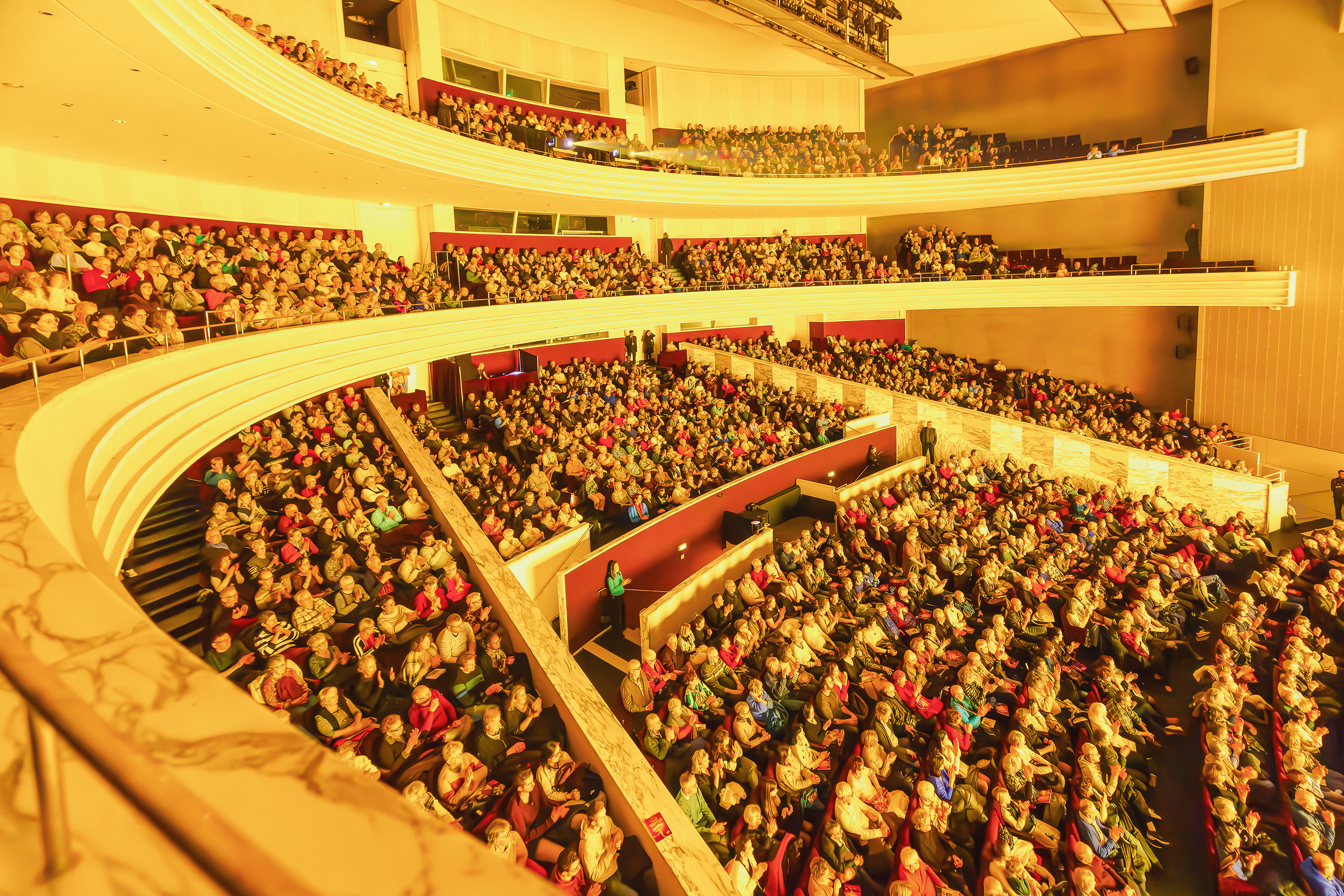 圖4:二零二六年二月二十一日,神韻巡迴藝術團在美國印第安納州印第安納波利斯市巴特拉藝術中心克勞斯紀念堂(Clowes Memorial Hall, Butler Arts Center)進行的兩場演出,下午場爆滿。(大紀元) |