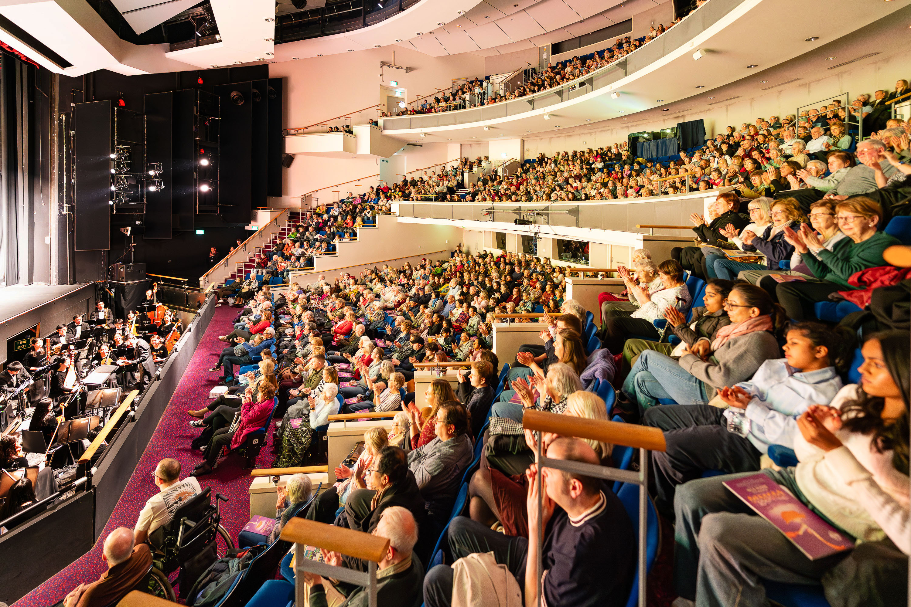 圖6:二零二六年二月二十二日下午,神韻環球藝術團在英國海威科姆的威科姆天鵝劇院(Wycombe Swan Theatre)的演出,全場座無虛席,觀眾沉浸在神傳文化的體驗中。(大紀元) |
