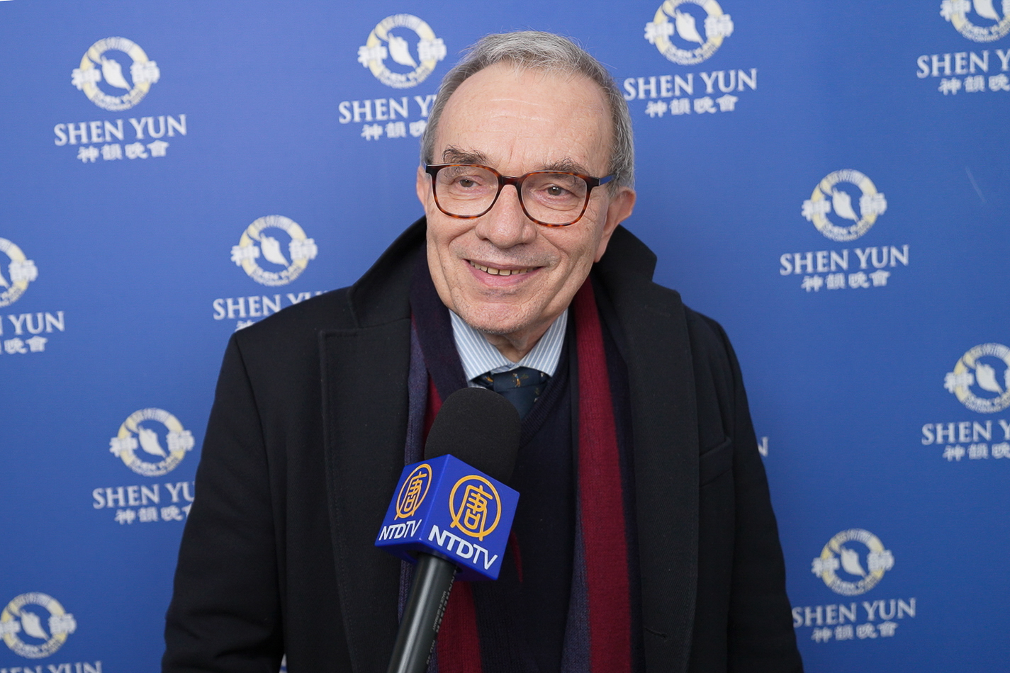 瑞士專業女高音歌手德雷福斯說:「神韻是完美度、心靈與神性的結合,是這個地球上展現和平的一部傑作。」 她說:「創世主下世救人的節目讓我深受觸動,因為我感受到,即使人類正經歷非常困難的時刻,仍受到神的指引與保護。演出中每一刻都充滿了恩典與愛。神韻有勇氣向世界展示神的恩典,讓我十分感動,藝術家真的非常、非常勇敢。」 「在當今世界,多數人都在沉睡,認為要獲得救贖遙不可及。而神韻告訴人,即使人們正經歷最大的痛苦,如果能將自己的神性與高層空間連結,神就在那裏。」 她說。 法國歷史學家觀神韻 一開始就熱淚盈眶  圖16:二零二六年二月二十二日下午,法國歷史學家、大學歷史教授阿蘭﹒科拉斯(Alain Collas)在法國南特觀賞了神韻演出。(新唐人電視台) |